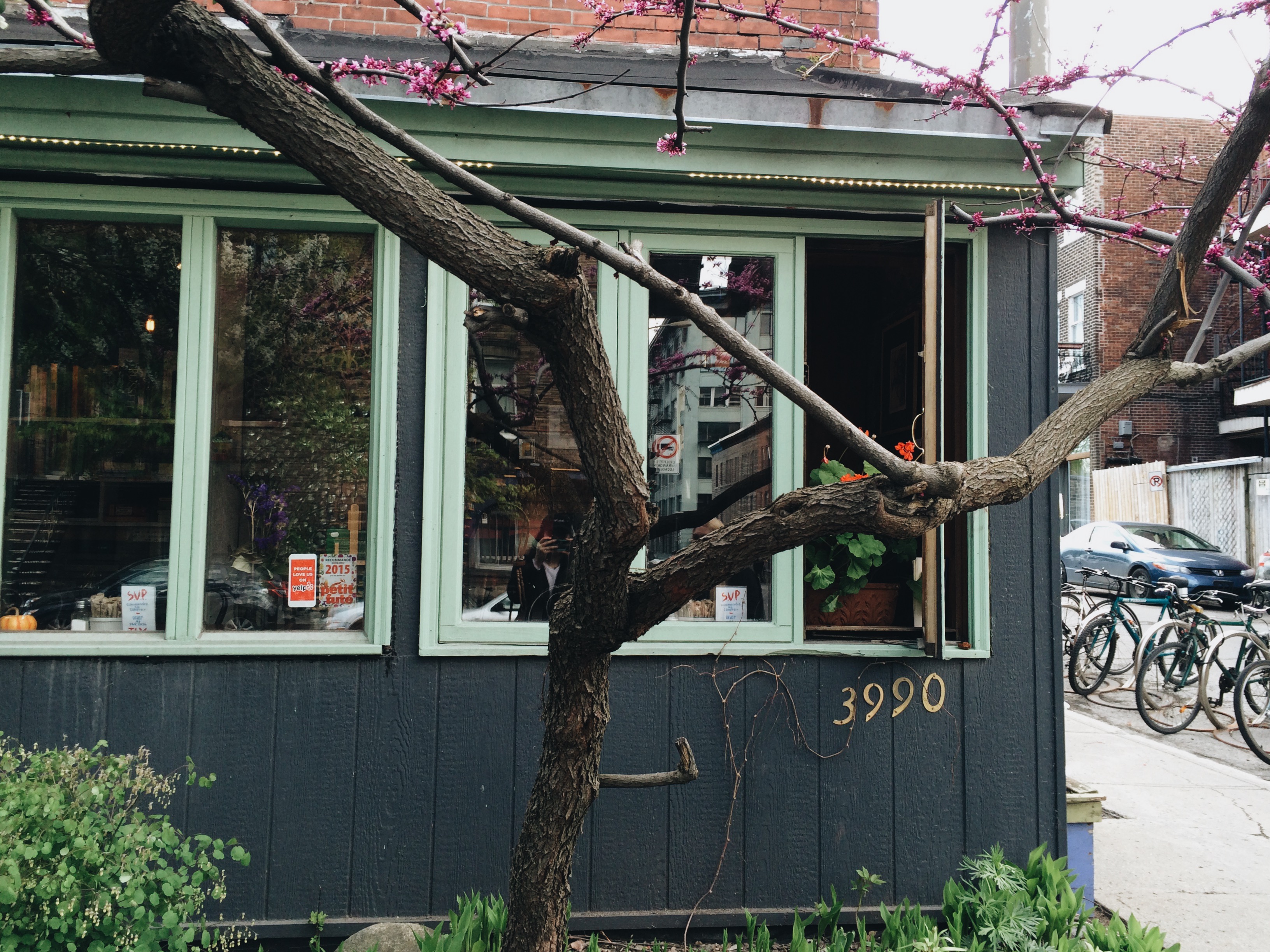 I went for lunch with some friends at Santropol, and although it wasn’t the warmest spring day, it was the perfect day for this new pink jacket. Santropol, by the way, is another great Montreal restaurant, they have amazing sandwiches and a cute backyard patio. Not to mention the area, right in the heart of the Plateau by Mount Royal park, it varies from both quiet and happening from one street to the other.