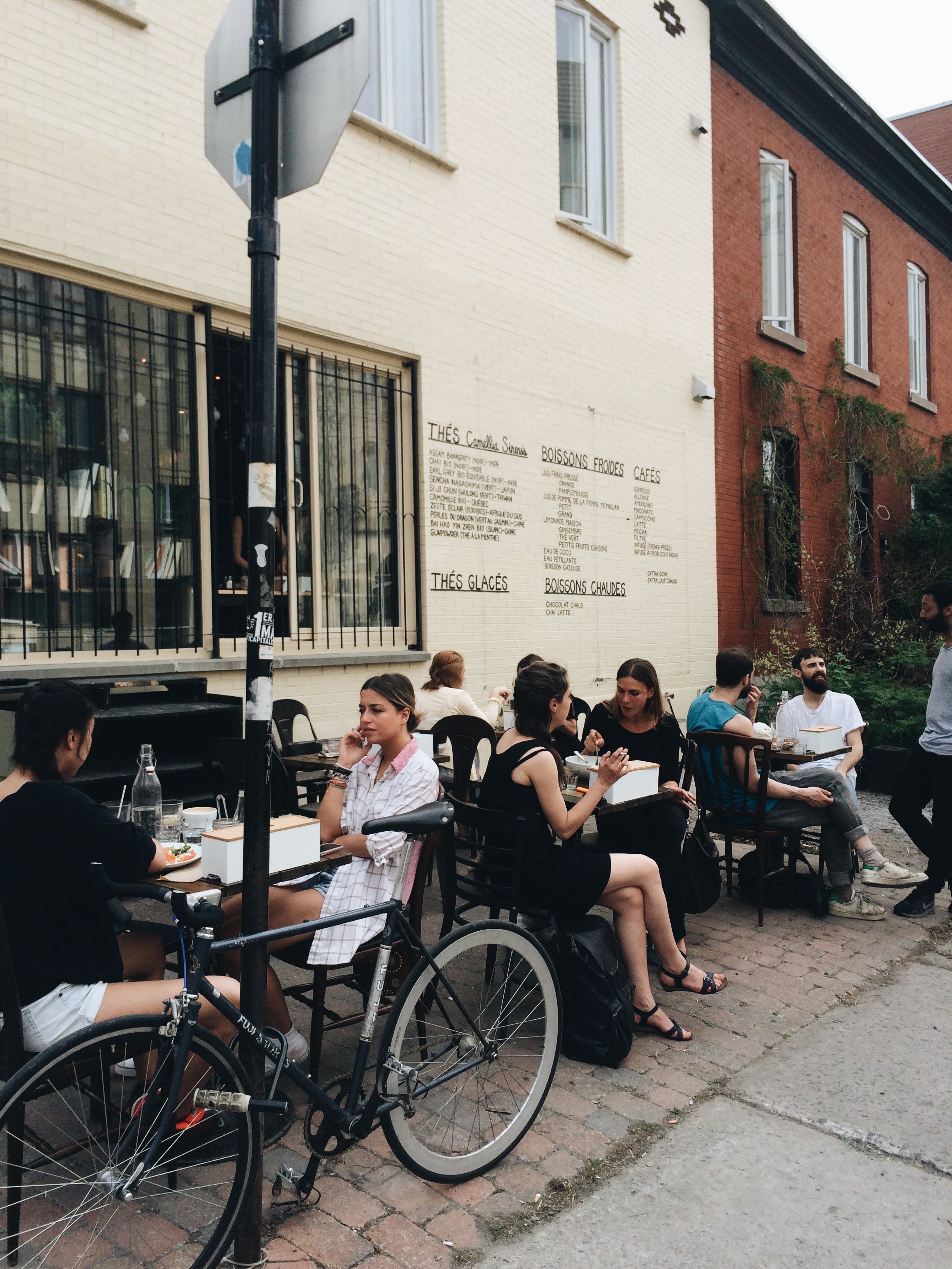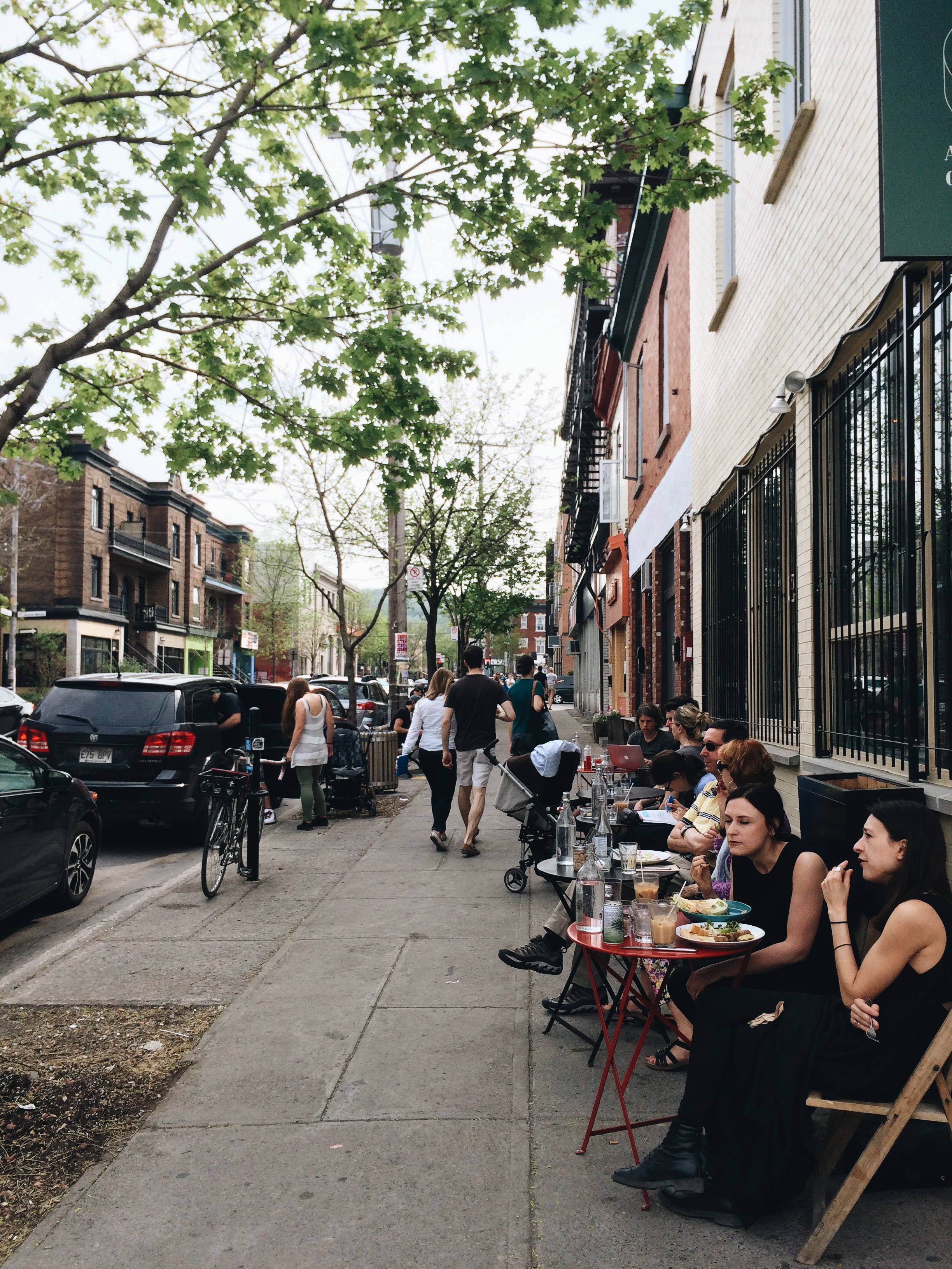 My “hood” here in Montreal is essentially the Mile End. I spend most of my days wandering around, picking up fresh bread at Lawrence’s, lunching at some of my favourite places, like Cafe Falco, Arts Cafe and Aux Vivres, devouring an endless supply of independent reads at Librairie Drawn & Quarterly, and scribbling in my notebook in the portugal park.