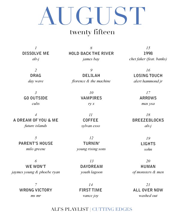 As the summer starts to wind down, I’ve found myself wishing the days and even the nights would be longer to enjoy every moment I have left of this wonderful season. I hope this playlist follows you on a sunny august afternoon, laying by the pool, road tripping for the weekend or enjoying an evening with friends.